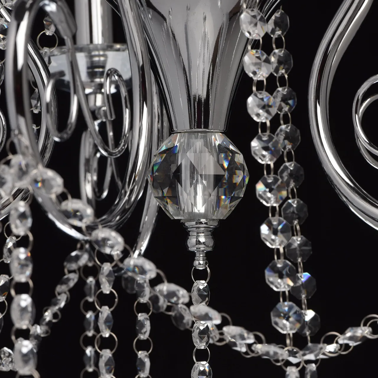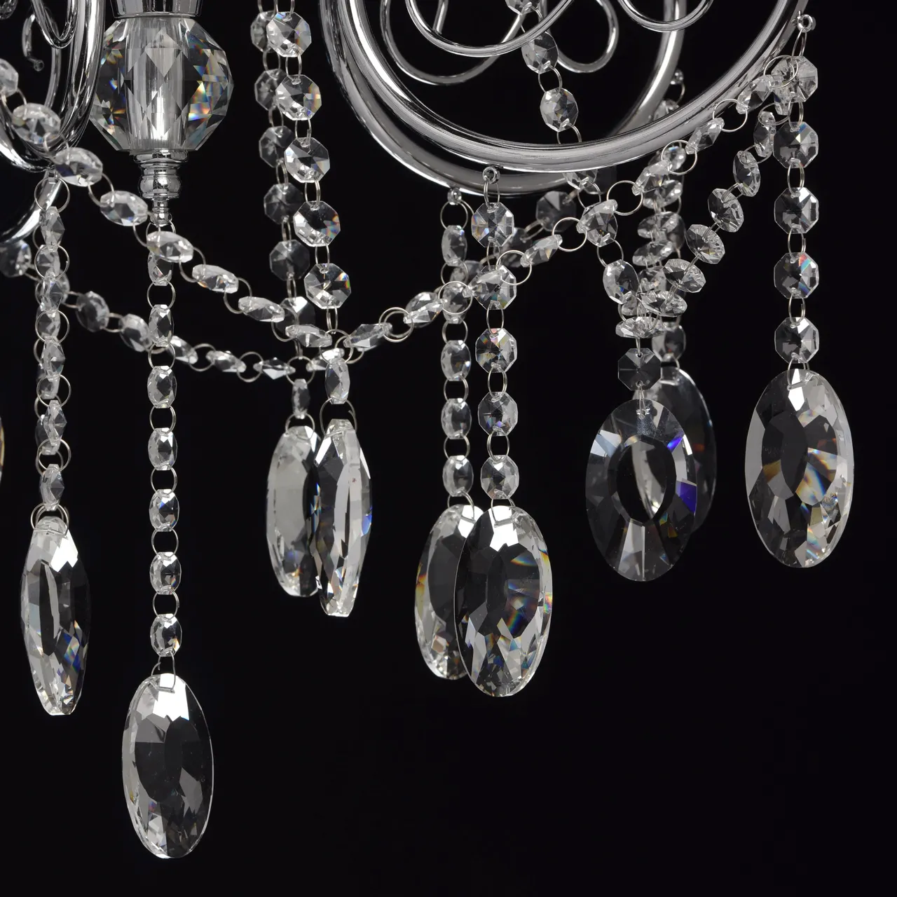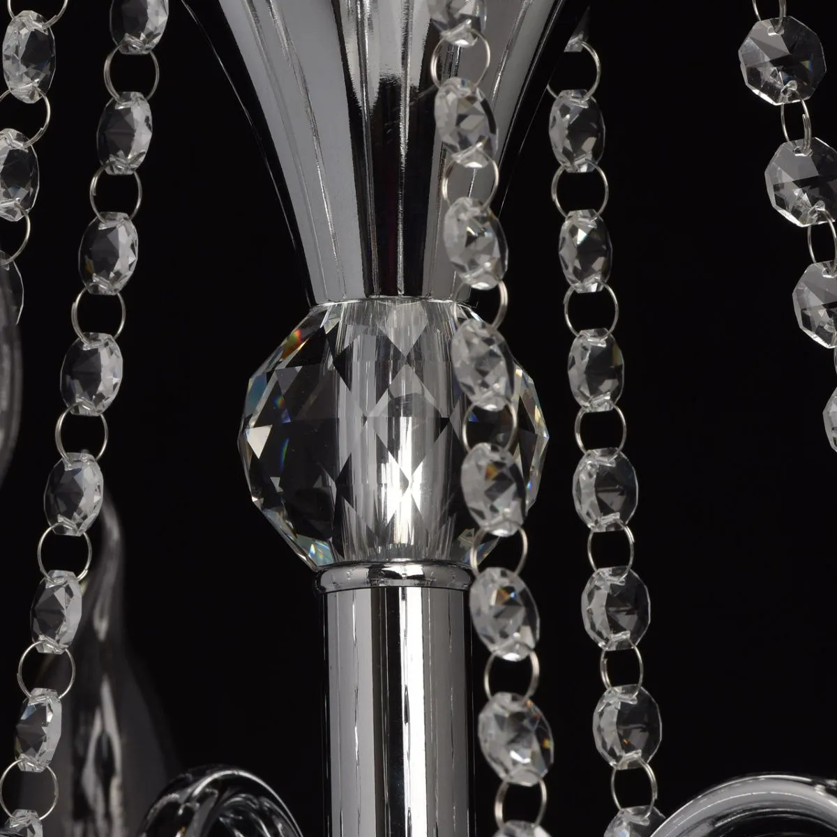 Металлическое основание цвета хрома. Декор - хрусталь, высокого качества.