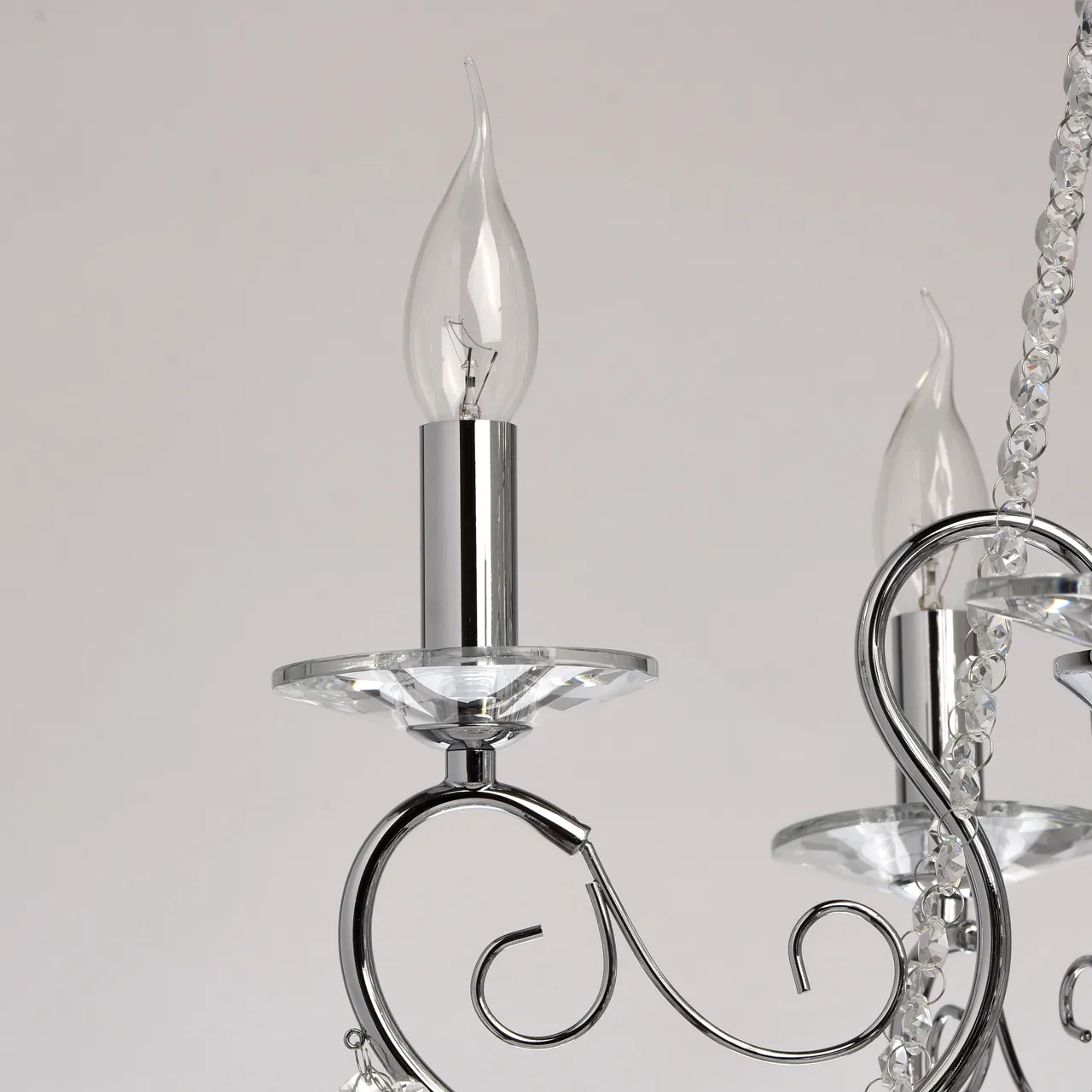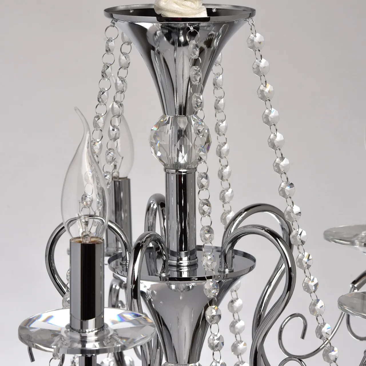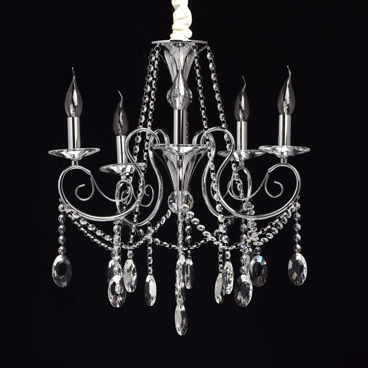 Металлическое основание цвета хрома. Декор - хрусталь, высокого качества.