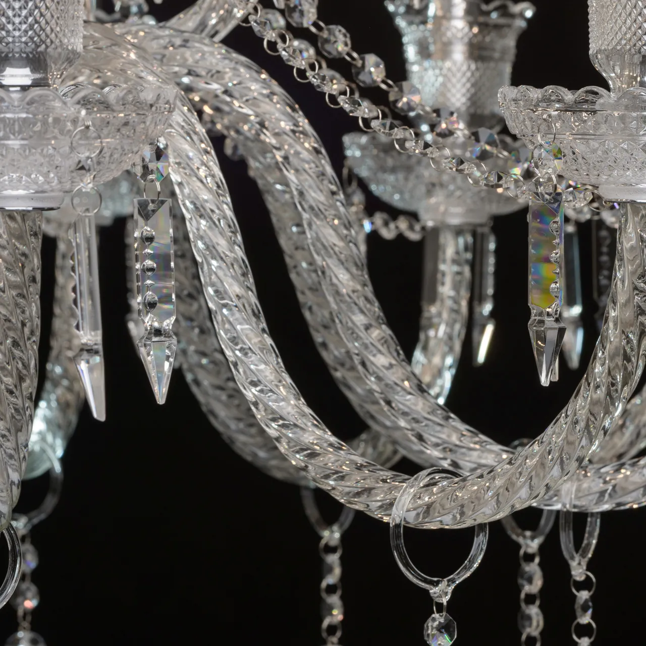 Металлическое основание цвета хрома, декоративные элементы из стекла и прозрачного хрусталя