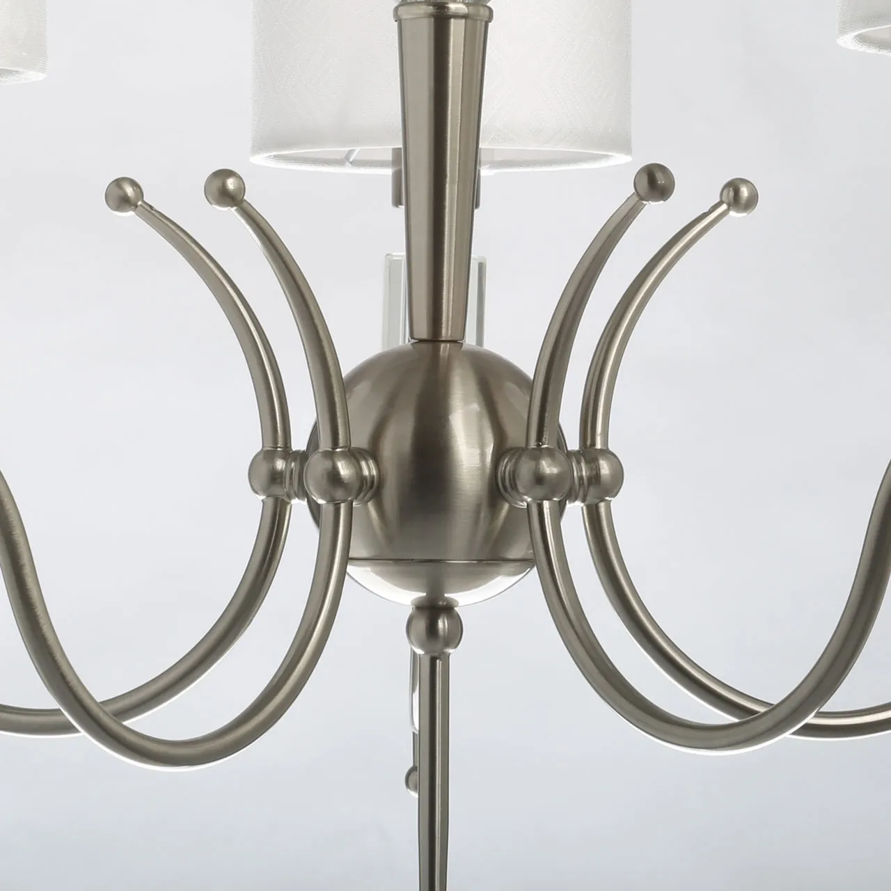 Основание/ металл/ никель Абажур/ текстиль, акрил/ белый, прозрачный Декор/ хрусталь/ прозрачный