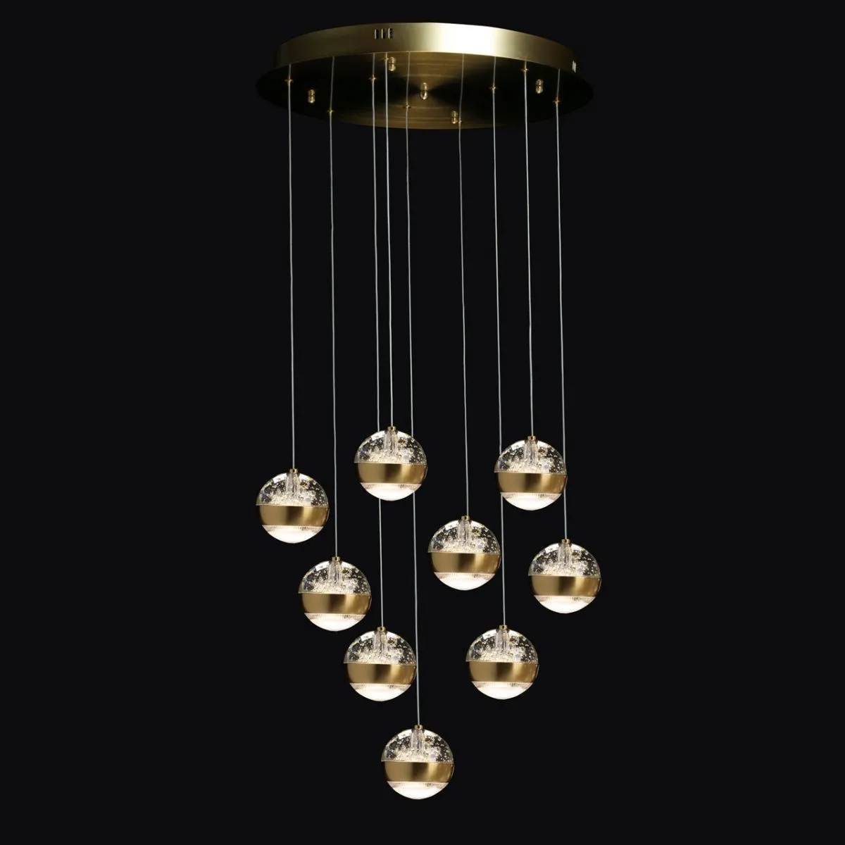 Основание/ сплав алюминия/ латунь Плафон/ стекло, акрил/ прозрачный, пузырьки воздуха