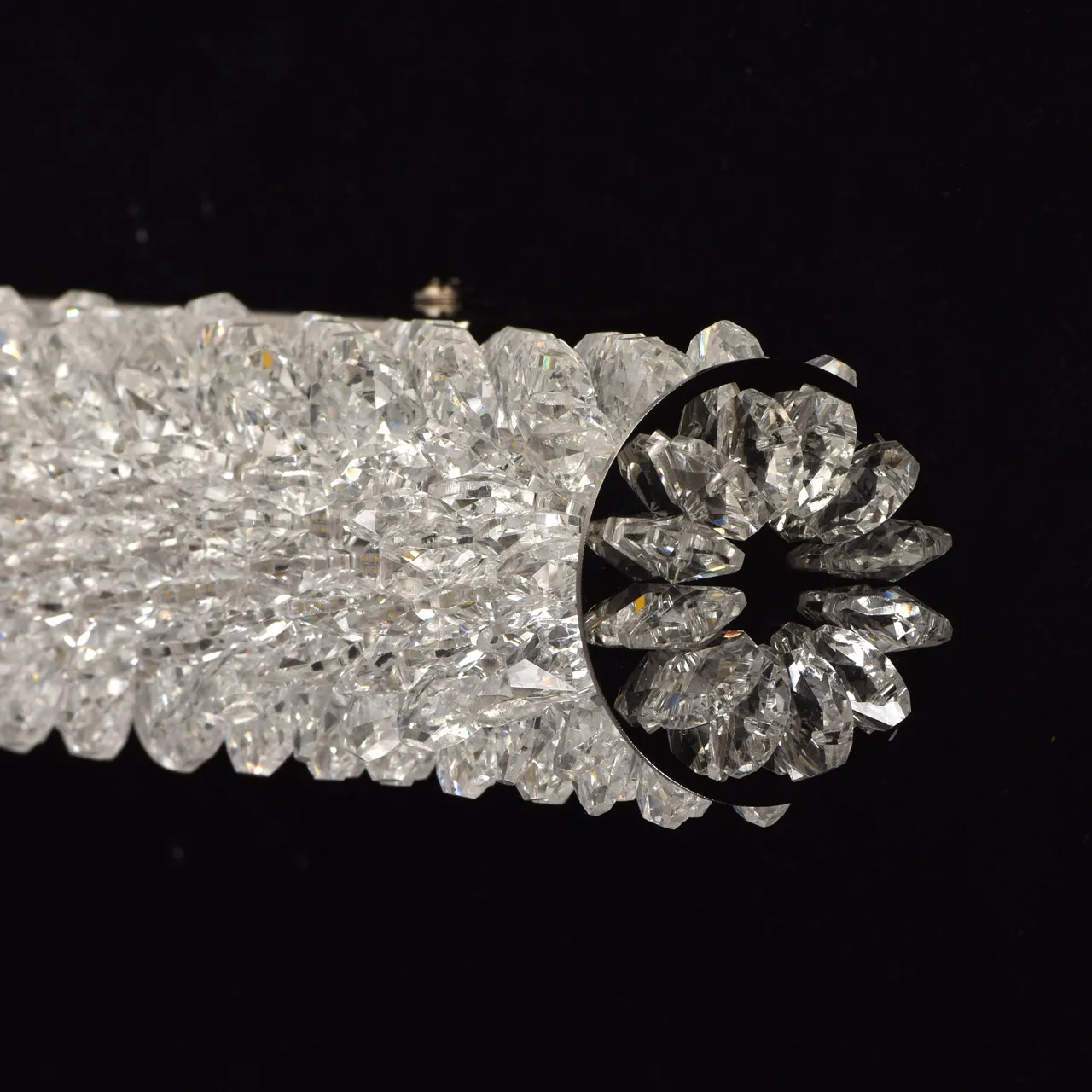Основание из нержавеющей стали. Плафон: прозрачный хрусталь.