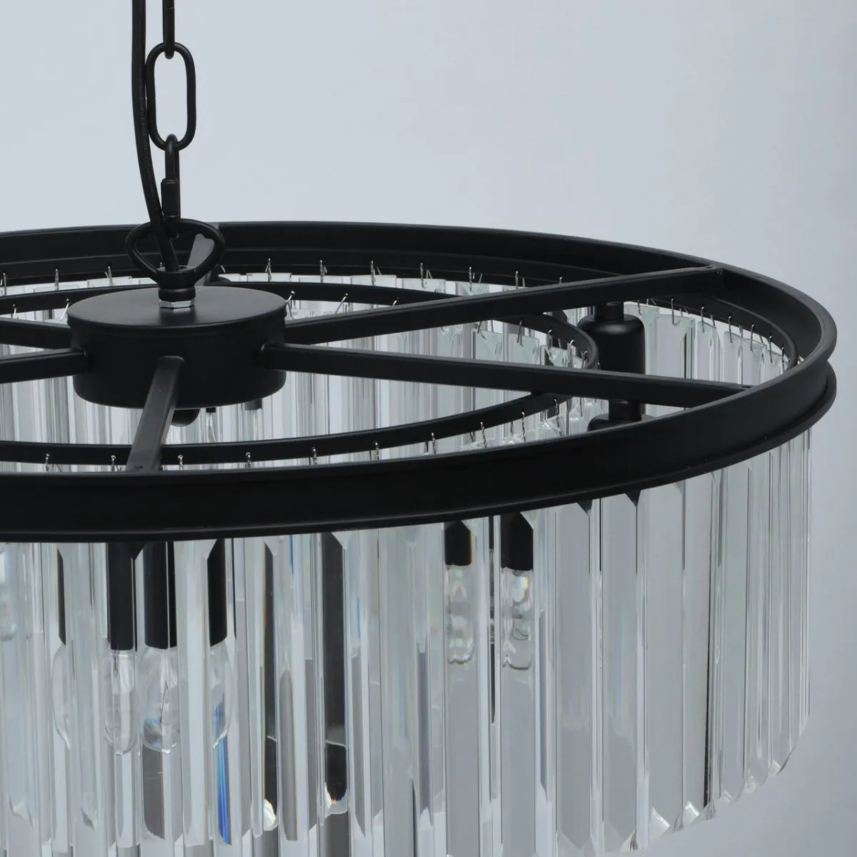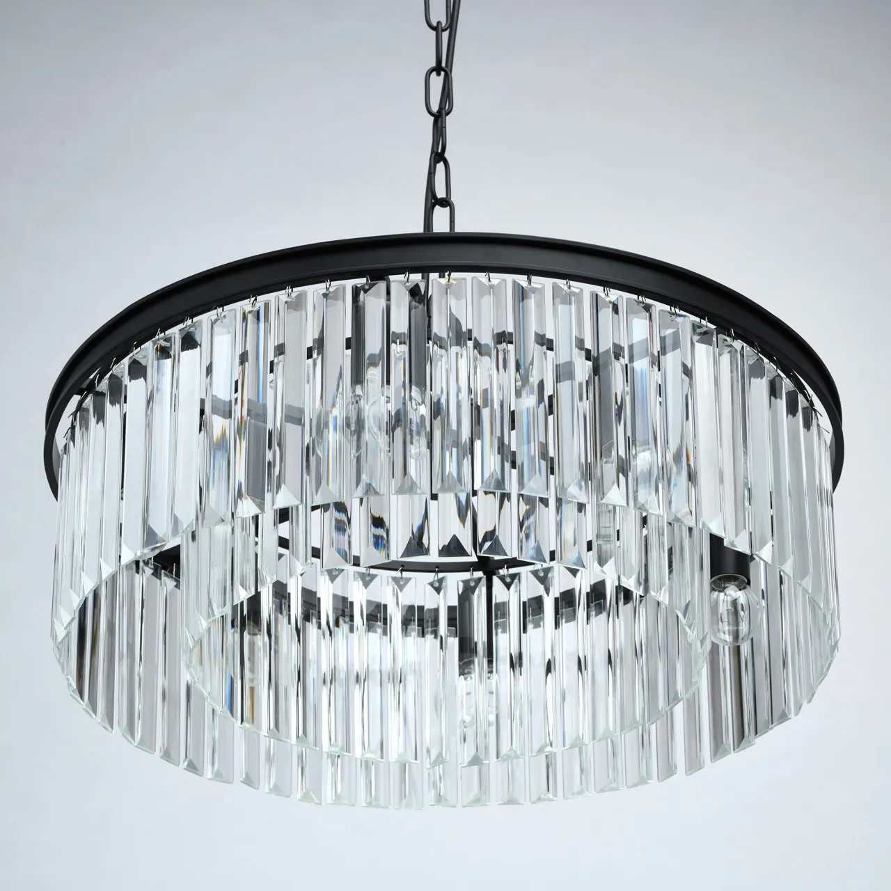 Металлическое основание черного матового цвета. Декор из хрусталя.